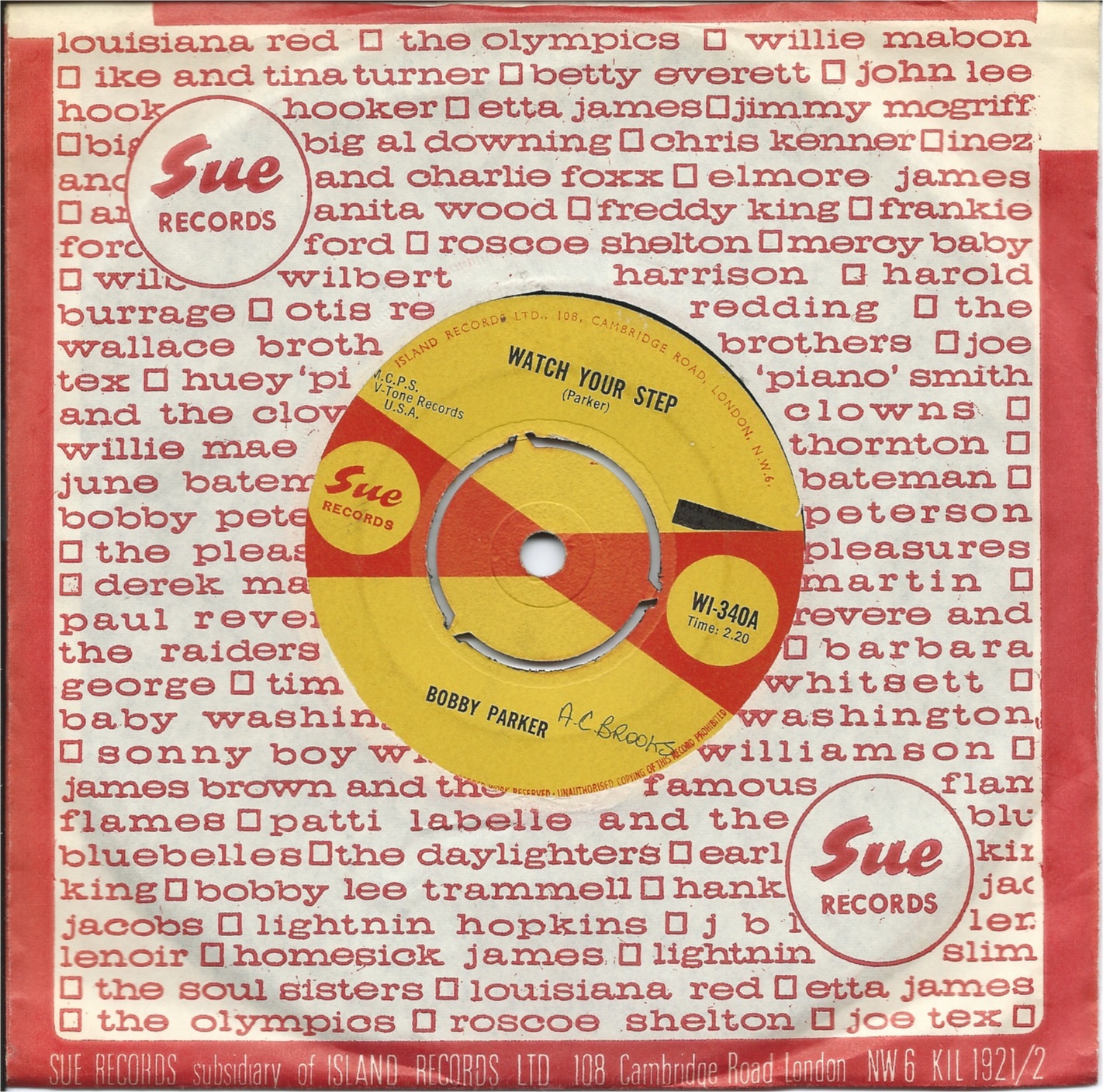 When my son was home on holiday this summer, I got him to put down the Fender Jazzmaster I bought him for his birthday a few years ago and listen to a 45 that had, I told him, the greatest guitar sound ever committed to wax: Bobby Parker’s “Watch Your Step”, recorded in 1961 for the V-Tone label and released in the UK three years later on Island’s Sue imprint. It was gratifying to observe his response. Here is the record in question, in all its explosive, spine-tingling glory.