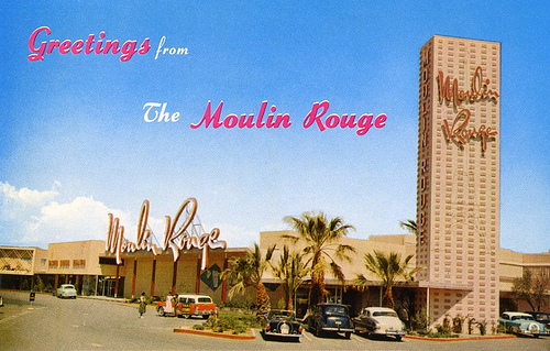 Such thoughts were on my mind when I got in the car on a hot afternoon one day about 10 years ago and headed for Vegas’s Westside, the remote black section of town. I was looking for whatever was left of the Moulin Rouge, opened in May 1955 as the town’s only non-segregated casino hotel. This was a time when black entertainers performing on the Strip were barred from staying in the establishments that employed them; famously, after Sammy Davis Jr went for a swim in the pool at the New Frontier, the management had it drained. Not surprisingly, the Moulin Rouge was a great success. Some of the great stars of the era played there, including Louis Armstrong, Billie Holiday and Dinah Washington, and among those who headed across town to enjoy the shows and the relaxed ambiance were Frank Sinatra, Tallulah Bankhead, Cary Grant, Judy Garland, Bob Hope, Dorothy Lamour and Gregory Peck. They were greeted by the former world heavyweight champion Joe Louis, the Brown Bomber, who had been given a small ownership stake by the project’s white backers.