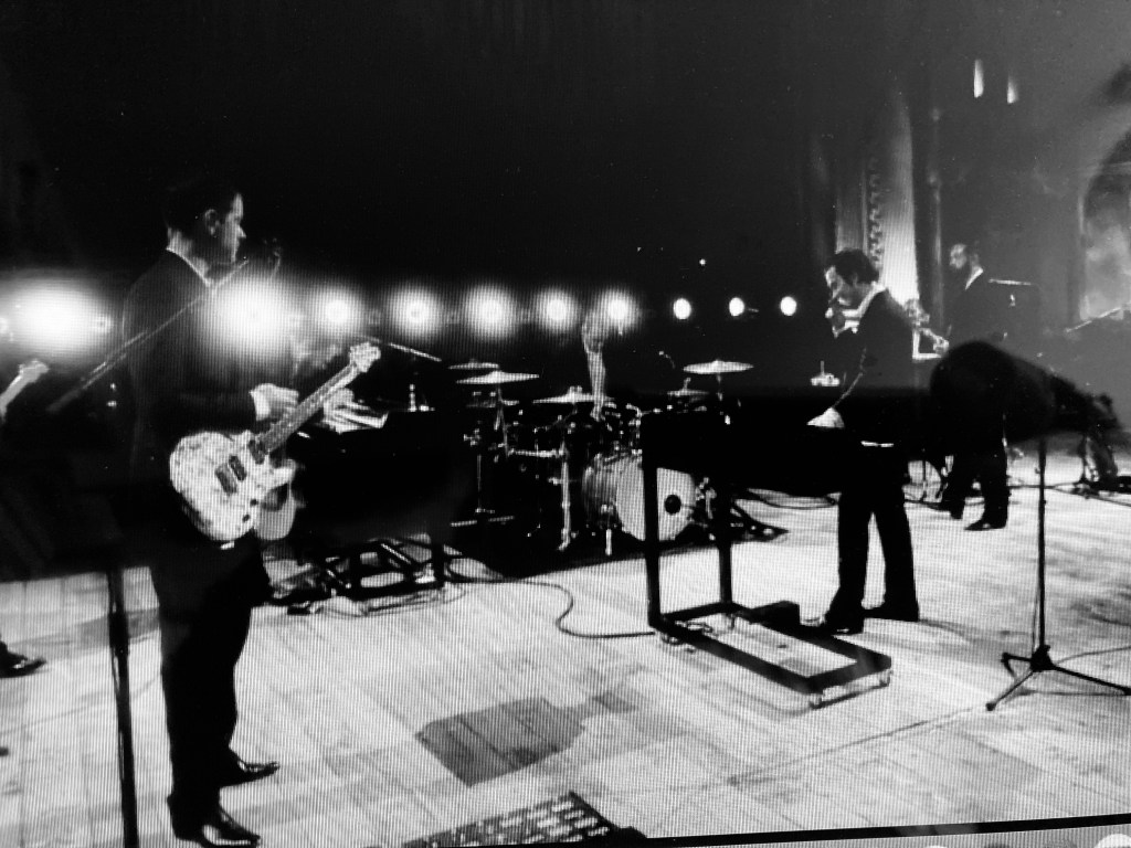 His singing was good in London, but in Nottingham it was astounding. Every line was nailed with phrasing that was always adventurous but never eccentric. I don’t think it was a change of emphasis in the sound mix: it was all in the vigour and projection of his delivery. As a result, songs like “Black Rider”, “My Own Version of You”, “Key West” and “I’ve Made Up My Mind to Give Myself to You” had a new confidence and richness, with a heightened sense of tension and release. The arrangements took on a different life, too. The Arlen/Mercer standard was brought off with a crisp panache. The twin surf guitar interludes on “Gotta Serve Somebody” were hair-raising. The three-movement version of “I’ll Be Your Baby Tonight” — first out of tempo, then Latin, then barrelhouse — was a delight. The rearrangements of “To Be Alone With You” and “Every Grain of Sand” glistened.