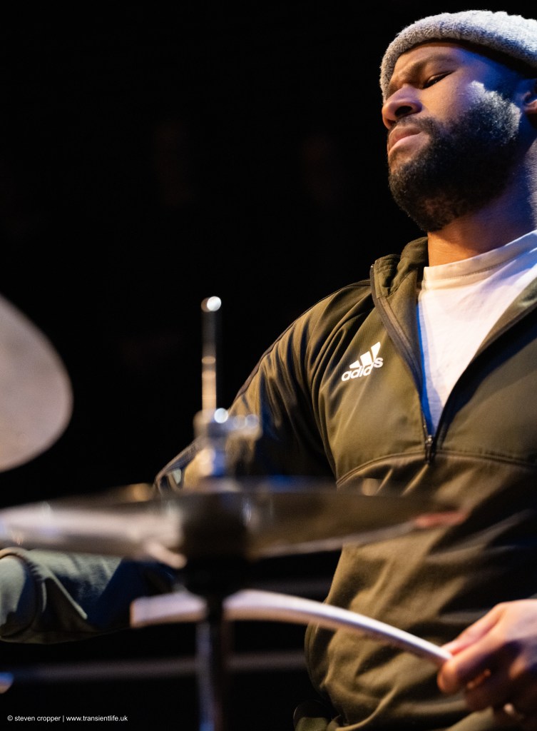I’ve said before that Jazz in the Round is my favourite live listening environment, and during Empirical’s set there was a good example of why that might be. It happened while Shaney Forbes was carefully unfolding a drum solo on “Like Lambs”, his own composition, against overlapping rhythm patterns played by Mansfield, altoist Nathaniel Facey and bassist Tom Farmer in what sounded like three different time signatures.