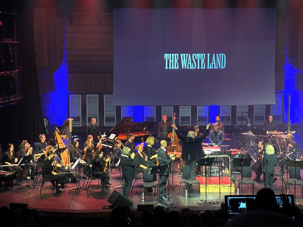 I was 15 when an English teacher named Keith Yorke took us through The Waste Land, decoding its mysteries. I could never thank him enough. Dunbar, introducing last night’s performance, in which the quintet was augmented by a 25-piece orchestra, said he had encountered it while studying at the Guildhall School of Music and Drama 40 years ago; clearly, its impact on him was similarly profound. My previous experience of a live performance of the poem was the actress Fiona Shaw reciting it from memory beneath a single bare lightbulb on stage at the historic Wilton’s Music Hall in the East End on New Year’s Eve, 1998. In my eyes, that gave Dunbar and his crew a lot to live up to.